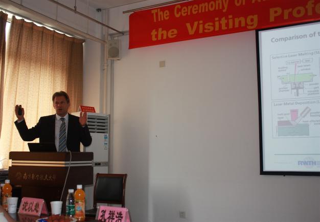 聘任仪式后,Ingomar Kelbassa教授为我校师生作了关于激光增材制造及3D打印的学术报告,Kelbassa教授的报告体现了德国在3D打印领域的最新研究进展及强劲研究实力。与会学生对报告内容表现出浓厚的兴趣,纷纷表示开阔了视野、增长了见识。会场气氛热烈,我校师生就3D打印热点与难点问题与Kelbassa教授作了深入交流,Kelbassa教授一一进行细致解答,展现出对科学的严谨态度,也充分展示了我校学生良好的学习精神和科研素养。