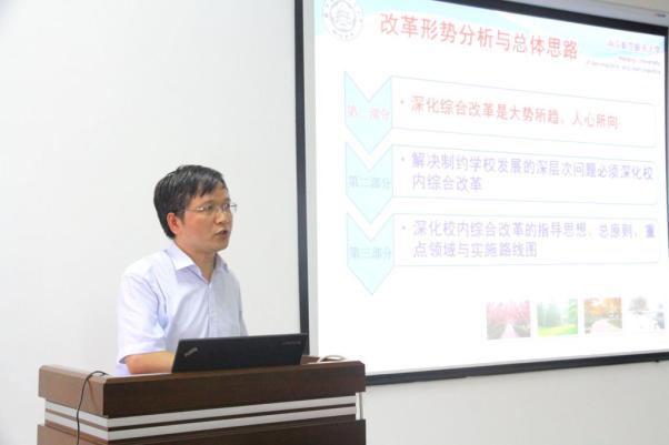 周克印作了总结讲话。他指出,我校实施校内综合改革既是大势所趋,也是人心所向,是每个“南航人”义不容辞的责任和使命。学院全体教职员工既要“借东风”,以综合改革为契机促进各项工作再上新台阶,也要“练内功”,认真改革形势和改革方向,努力提升自身工作水平,在学校学院的大发展中作出更大贡献。