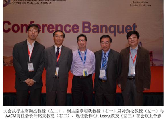 2014年10月15日-17日,由亚澳复合材料学会(The Asian-Australasian Association for Composite Materials,AACM)主办,中国复合材料学会、午夜av 、江苏省复合材料学会、南京工业大学和江苏先进无机功能复合材料协同创新中心联合承办的第九届亚澳复合材料会议(The 9th Asian-Australasian Conference on Composite Materials ,ACCM-9)在苏州隆重召开。