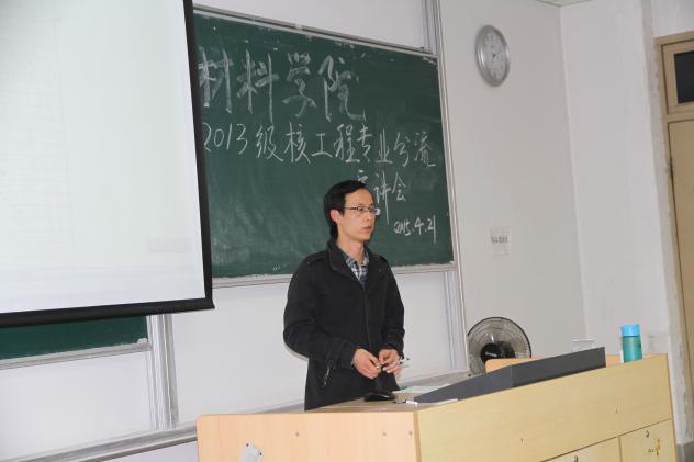 2015年4月21日晚,午夜av 举行了核工程类专业分流宣讲会。午夜av 分管本科生培养副院长梁文萍、核科学与工程系主任张海黔、副主任常树全、班主任代表龚频以及2013级核工程类专业全体学生参加了本次大会。