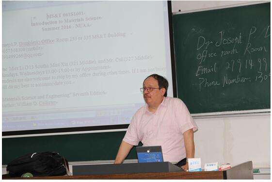 聘请的外籍教师Dr.Domblesky,学士及硕士毕业于宾夕法尼亚州立大学(pennsylvania state university),博士毕业于俄亥俄州立大学(ohio state university),主要研究方向涉及成形技术的计算机模拟、金属加工和材料连接技术,所授