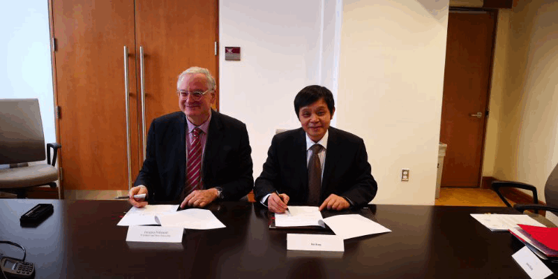 出访团一行于1月10日来到加拿大多伦多大学士嘉堡校区。校长聂宏教授与多伦多大学士嘉堡校区副校长、物理与环境学院Bernie Kraatz教授进行了热烈而又深入的交流。在深入交流互鉴的基础上,两校签署了《午夜av -多伦多大学合作备忘录》。双方一致认为,此次签约是午夜av 与多伦多大学开启全面交流合作的重要一步,为了促成今天的全面合作签约仪式,双方前期一直保持密切的联系和人员互访,付出了很多努力和辛苦,进行了大量的沟通和联系。南航通过邀请Bernie Kraatz教授为客座教授,为学生讲授国际课程,建立了扎实的合作基础,期待双方通过真诚的相互信任,共同推动具体合作内容稳步推进落实,共同提升彼此的教育水平、科研能力和学科平台。