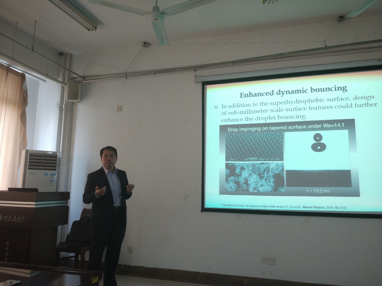 在本次报告中Chen Zhong教授介绍了先进防冰涂层制备技术及其发展趋势,报告内容丰富、生动、精彩,对我校相关科研工作具有借鉴作用。同时,Chen Zhong教授向各位同学分享了自己多年的科研经历。报告持续了约一个半小时,汇报期间,与会师生积极提问,与Chen Zhong教授进行了充分的交流与讨论。