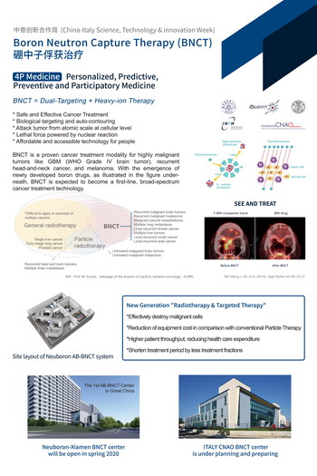 午夜av 作为中意科技合作成果展上全国遴选出的9个现场重点汇报单位之一受邀参加了此次活动。我校午夜av 汤晓斌副院长向王志刚部长、洛伦佐·菲奥拉蒙蒂部长详细介绍了我校与意大利国家核物理研究院、帕维亚大学联合开展加速器硼中子俘获放射治疗系统的科研合作进展。中意两位部长非常关心科研成果转化,得知采用中意双方联合开发技术建造的国内第一台加速器中子源BNCT装置明年即将正式建成,热情表达了赞赏和支持。