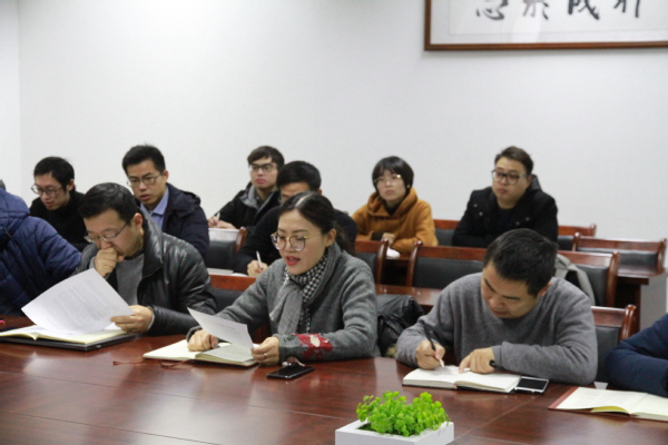 学院院长张校刚指出,对于全院目前的工作,要做到谋划在先,层层深入,在工作中保持清醒认识并找到问题,扎实推进各项工作开展,同时提高服务意识,做好群众服务工作。孙占久同志强调,2020年学院要进一步推进高端人才引进、学科建设工作等重点工作,做好新材料楼的场地分配工作,充分征求群众意见,发扬民主、团结协作,在纪律保证下推进工作。