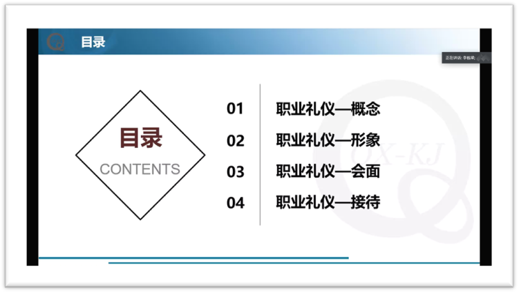 首先,李栋梁对职场礼仪的由来、重要性做了详细介绍,并对“第一印象”做了着重解读,同时以情景再现、提问互动等方式让同学们体会到职场礼仪的注意要点。