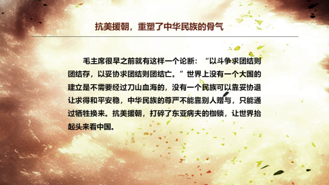 战火融进中华大地,精神留存你我心中。在小组代表戴锦华的带领下,大家从“保和平,为祖国,就是保家乡”的战争背景、“立国之战,中华民族挺起胸膛”的战争意义全方位学习了抗美援朝在我军历史上的重要地位。这场“寒冷”的战争重塑了中华民族的骨气、打出了中国的国际地位,这些都镌刻在每一位中国人民解放军的心中。