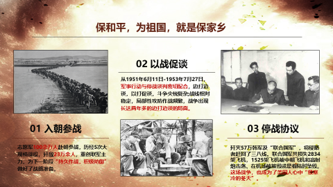 在前期准备中,围绕着中国人民解放军“政治建军”“为人民服务”的两大特色,将活动划分为人民军队创立、政治建军思想的形成、以朝鲜战争为代表的里程碑事件、为人民服务的先进事迹等四部分进行分小组的学习,小组成员围绕主题自行选择感兴趣的素材,将鲜活的故事和深刻的道理结合起来进行展示。