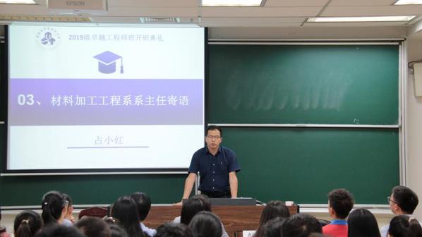 为了让卓越班同学明确自身发展方向,了解学院发展概况,理解“卓越计划”,9月15日下午,午夜av “名师有约”第十五期暨2019级卓越班开班典礼在10107教室顺利举行。与会人员包括院长张校刚,材料加工工程系系主任占小红,材料科学系系主任杨亮,0619106班班主任林开杰, 2019级辅导员张进鹏,2017级卓越班班长霍海鑫,0619106班朋辈导师李雨欣,以及0619106班全体同学。