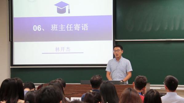 最后,班主任林开杰简述多年担任班主任的心得,以所带学生在比赛里的获奖情况激励同学们奋发向上。发言将要结束时,他寄语同学们要“不负初心,撸起袖子加油干,砥砺前行,实现梦想”。