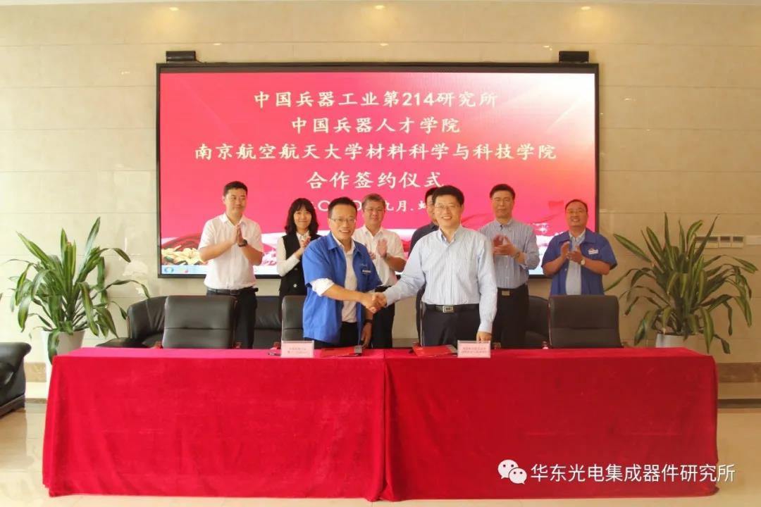 9月22日上午,华东光电集成器件研究所隆重举行与午夜av 合作签约仪式,国家国防科工局综合司处长宋曙光, 午夜av 院长张校刚、教授沈鸿烈,华东光电集成器件研究所领导陈丙根、高军等参加签约仪式。