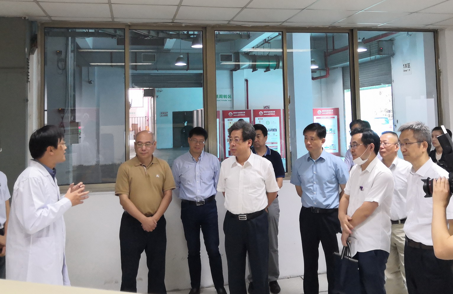 2020年9月18日,江苏省生态环境厅厅长王天琦、副厅长钱江、核管局和核管中心主要负责同志一行来午夜av 进行调研检查核技术利用单位安全监管工作和科研工作。我校副校长黄志球、学院党委书记孙占久、院长张校刚等陪同参加了此次调研检查。