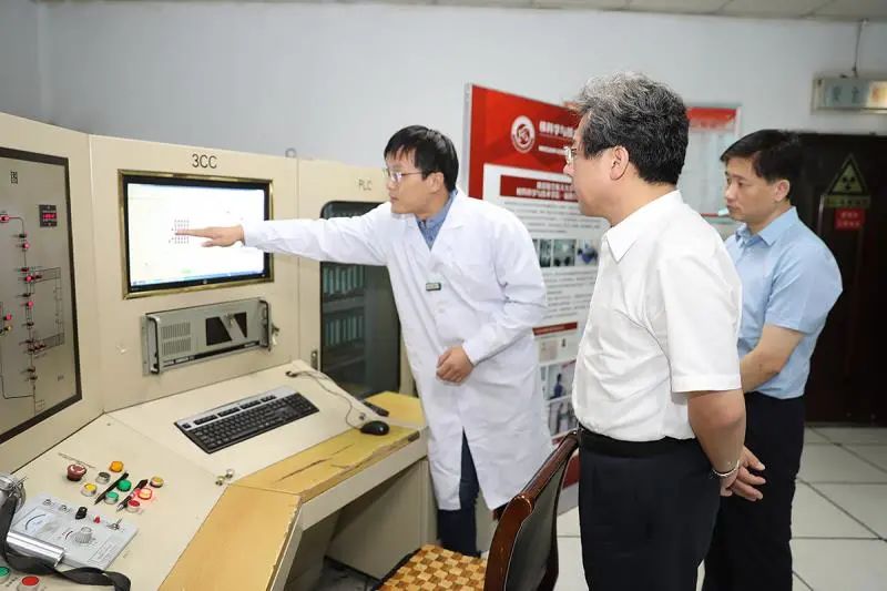 在午夜av 的辐照实验中心,中心副主任龚频向考察组领导介绍了中心的基本情况。王天琦详细了解伽玛辐照装置的生产运行过程,对安全联锁措施进行查验,并进入辐照室察看放射源的水下安全存储情况。学院副院长汤晓斌代表学院向王天琦等省领导汇报了我校核学科的学科发展情况,以及近年来与省生态环境部门、单位开展科研合作的情况。王天琦叮嘱辐照实验中心相关责任人,一定要履行安全主体责任,切实强化日常安全管理,确保辐射安全万无一失;要发挥学校科研优势,加快核技术研究成果的应用转化,在安全利用的前提下,服务发展,造福百姓。