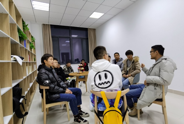 2020年12月2日下午,午夜av B315教室热烈的氛围打破了寒冬的沉寂,来自核技术系的王思鹏老师与慧园2栋504-03、504-04、506-01,怡园22栋504-04宿舍的同学进行了深入的交流。当平易近人的“鹏哥”走进房间时,大家都感到了异常的亲切。紧凑的座位,拉近了距离;满目的零食,赶走了拘束。剩下的,就只有兄弟间的推心置腹。
