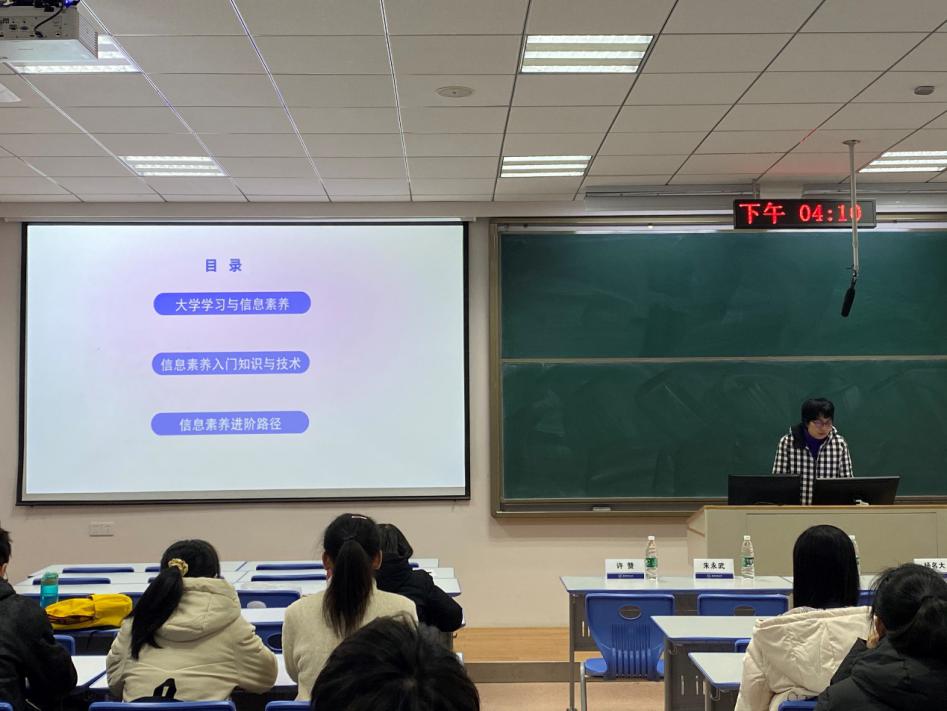 随后,由图书馆学科服务负责人赵晨洁老师给大家带来了讲座——大学生信息素养入门。赵晨洁以美国学者埃德加.戴尔提出的“学习金字塔”理论为开头,分析了信息素养对于深度学习的重要性,进而从熟悉信息检索来源、了解信息检索途径、掌握信息检索技巧和管理已下载的信息资源这四个方面为同学们答疑解惑。讲座中,赵晨洁不仅介绍了图书馆馆藏资源的内容概况,还详细且全面地为同学们讲解了文献资源获取的途径、在校外免费下载校内资源的方法、日常检索的策略、快速有效获取文献信息的方式以及对于已下载文献资源的管理措施,使在场的同学收获良多,丰富了同学们对信息检索的认识。