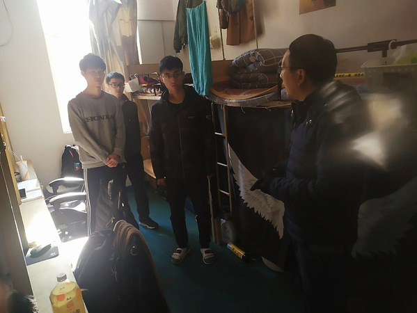 走访过程中,单冠贤与同学们打成一片,聊家乡、论生活、谈专业、展未来,话里话外都是浓浓的师生情。时隔多年再次回到学生宿舍的单冠贤不禁回忆起他的学生时代,与同学们分享了自己当时的苦与甜,感慨数载岁月带来的万千变化,也希望同学们能珍惜现在拥有的幸福,尽情体会大学生活的美好。同时,单冠贤也关心了每一位同学的学习情况,督促同学们不能懈怠,要敢于吃苦、敢于拼搏,并推荐同学们积极借助图书馆的资源进行提升,有任何问题都可以与他联系。整个过程中,单冠贤提到最多的一个词就是“目标”,他希望每位同学都能有一个清楚的目标,并为之奋斗,不辜负过去、对得起现在、拼一个未来!