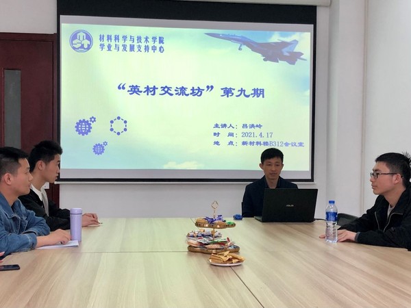 为引导学风建设,帮助解决材料学子对于就业、读研的困惑,2021年4月17日,第九期“英材交流坊”在新材料楼b312成功举办。本次分享座谈会邀请到了2014年材料加工工程博士毕业的吕洪岭校友,其在校时的研究方向是锂离子电池负极材料。曾先后就职于中材科技和霍尼韦尔,目前在霍尼韦尔从事电化学气体传感器的研发工作。