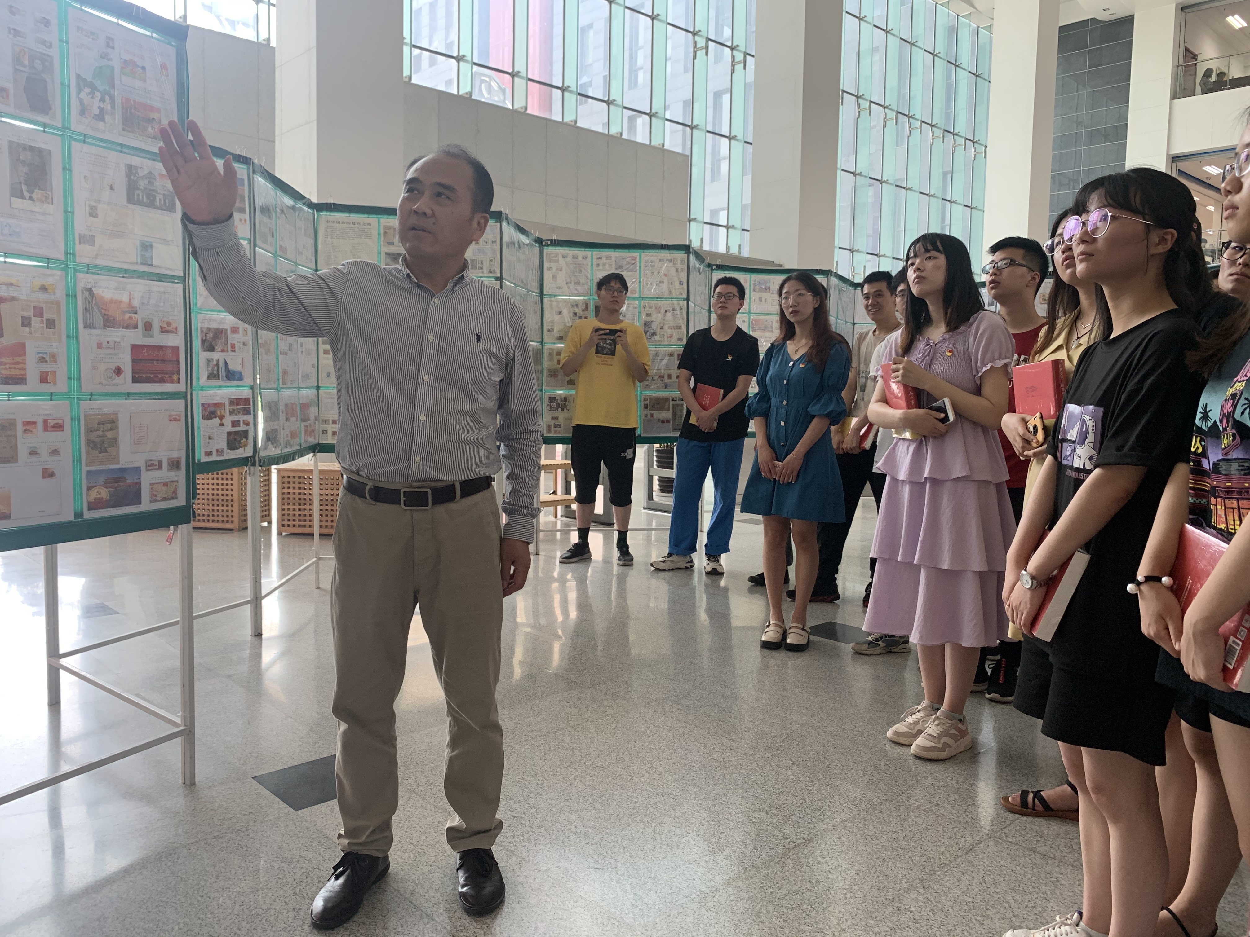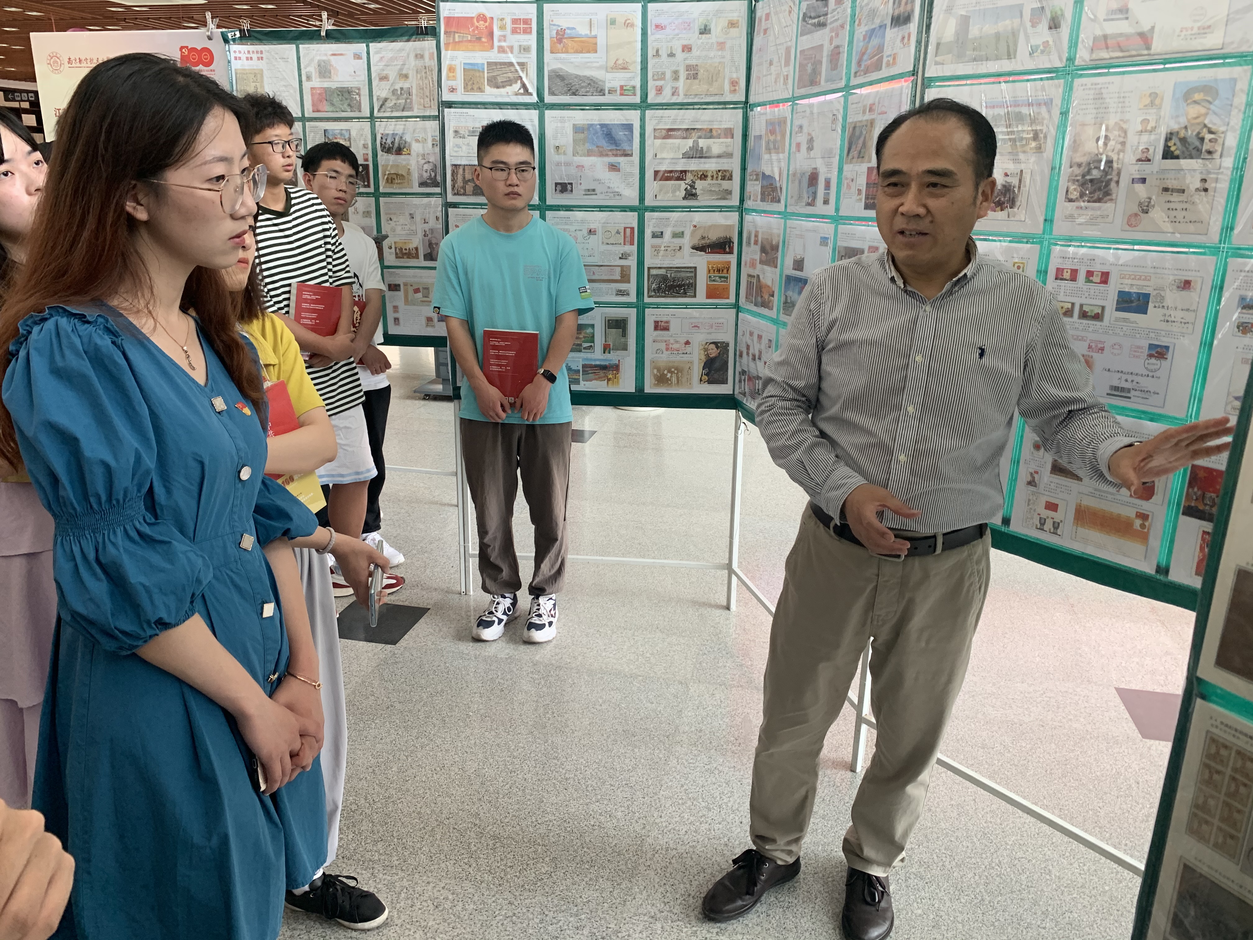 活动邀请了江苏省在宁高校科研院所集邮协会总顾问、江苏省邮资封片评委、南京市集邮协会常务理事、全国青少年邮票设计大赛评委井茂功为师生党员进行了讲解。井老师对现场50框展品、800个贴片和近万枚精美的邮票一一进行了讲解。本次展览以邮票为载体,讲述各个时期党和国家的重大历史事件及发展成就,将邮票的独特魅力与党史的厚重内涵相结合,用邮票背后鲜活的党史故事,传承红色精神。从中华人民共和国的国旗、国徽、国歌,到中华民族的复兴之路,再到没有共产党就没有新中国,透过小小的邮票,可以看到党的伟大足迹,以及新中国的成长和时代变迁。