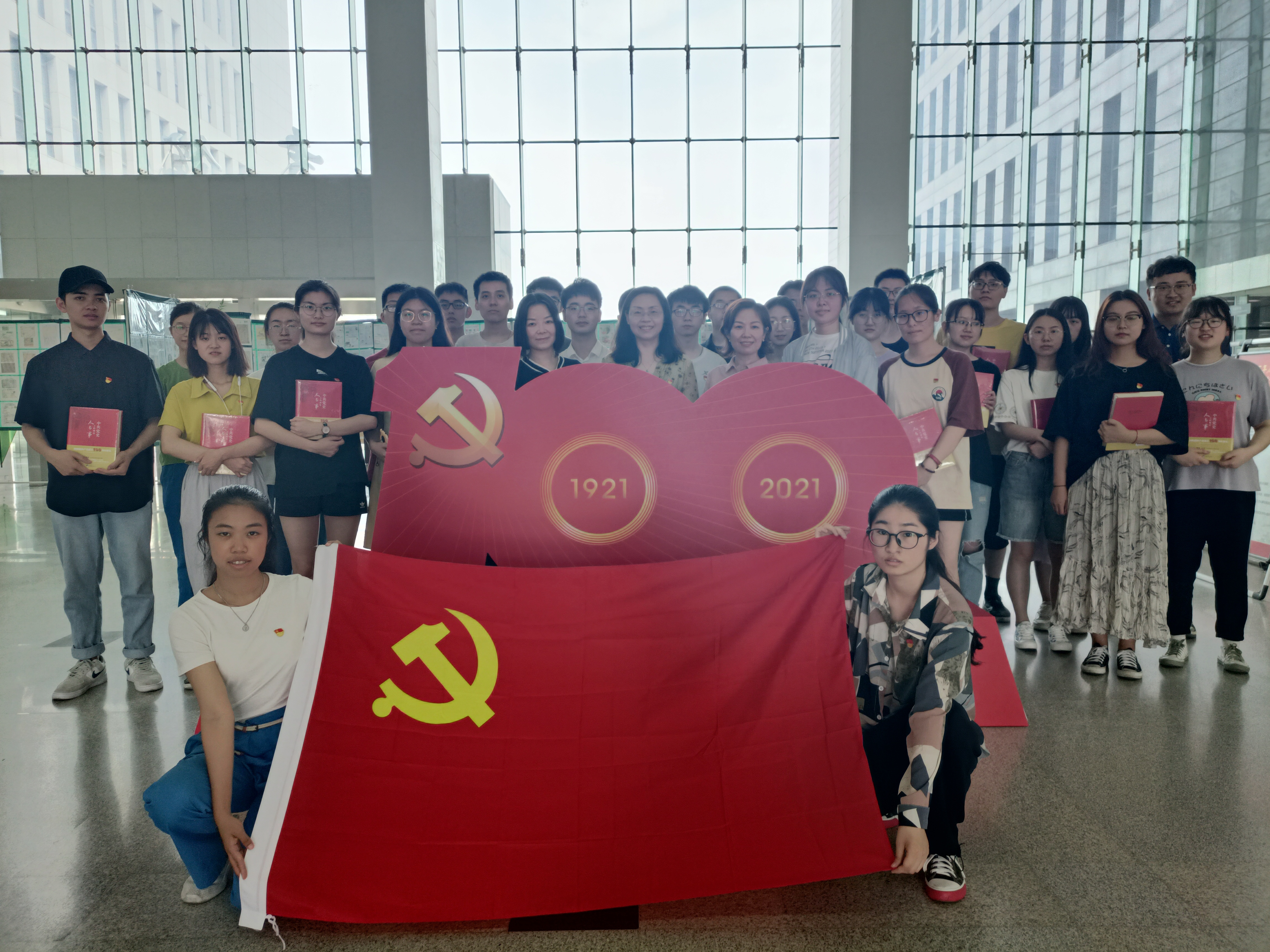 5月31日中午,校工会党支部联合午夜av 本科生0618党支部共同开展“观红色邮展,学百年党史”主题党日活动。双方党支部全体党员来到将军路校区图书馆,参观了庆祝中国共产党成立100周年江苏省在宁高校科研院所集邮协会主题邮展。