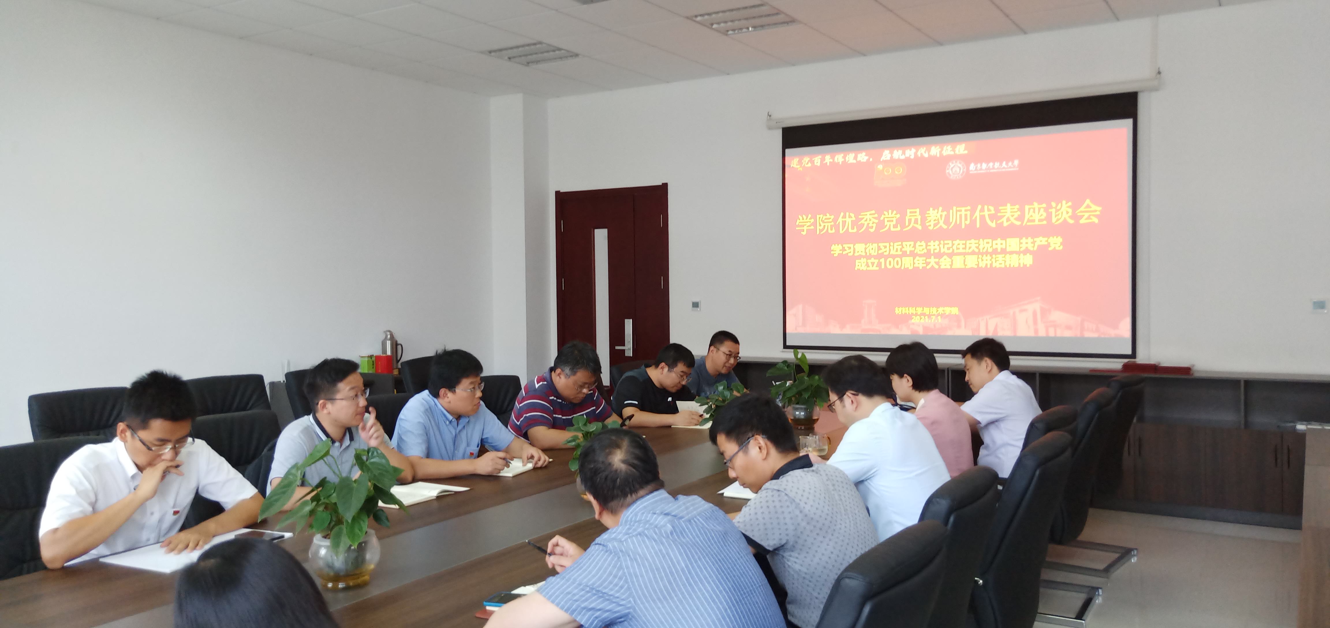庆祝大会后,学院党委召开优秀党员教师代表座谈会,围绕习近平总书记在庆祝中国共产党成立100周年大会上的重要讲话开展了热烈的学习和讨论,学院党委书记石勇、党委副书记许赞,学院副院长汤晓斌、陶海军参加座谈。