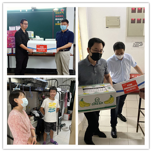 为进一步舒缓疫情给学生们带来的心理压力,学院领导们在慰问出发前,为在校学生们精心准备了水果、口罩等物资,搬运到学生宿舍,送到同学们的房间。院领导关心询问同学们疫情期间的饮食、作息、学业等情况,并叮嘱同学们保持良好心态,平衡好生活和学习、科研,积极利用线上方式解决学业难题、全面提升自我。