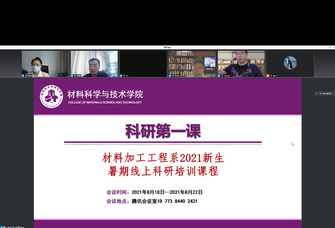 8月18日上午10:00,材料加工工程系2021级新生暑期课程举行了开班仪式。张校刚院长、占小红院长助理、郭训忠主任以及各课程授课教师均在线参与,并和新生们热烈互动。