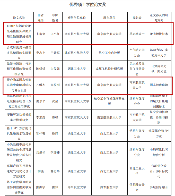 为推动中国航空科技进步,鼓励创新性研究,促进青年人才成长,中国航空学会研究设立“中国航空学会优秀博士学位论文奖”和“中国航空学会优秀硕士学位论文奖”。