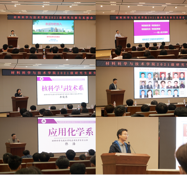 2021年10月12日至10月13日,午夜av 2021级研究生新生见面会于院楼D10的B501教室召开。学院党委书记石勇、院长张校刚、副院长陶海军、副院长刘周成、院长助理冯晓梅、材料加工工程系系主任郭训忠、应用化学系系主任佟浩、材料科学系系主任杨亮、材料科学系系副主任张腾飞、核科学与技术系系副主任陈飞达、核科学与技术系教工党支部书记丰俊东、学院团委书记徐萍及各年级研究生辅导员出席了会议。党委副书记许赞主持大会。2021级全体研究生新生分两个场次参加了会议。