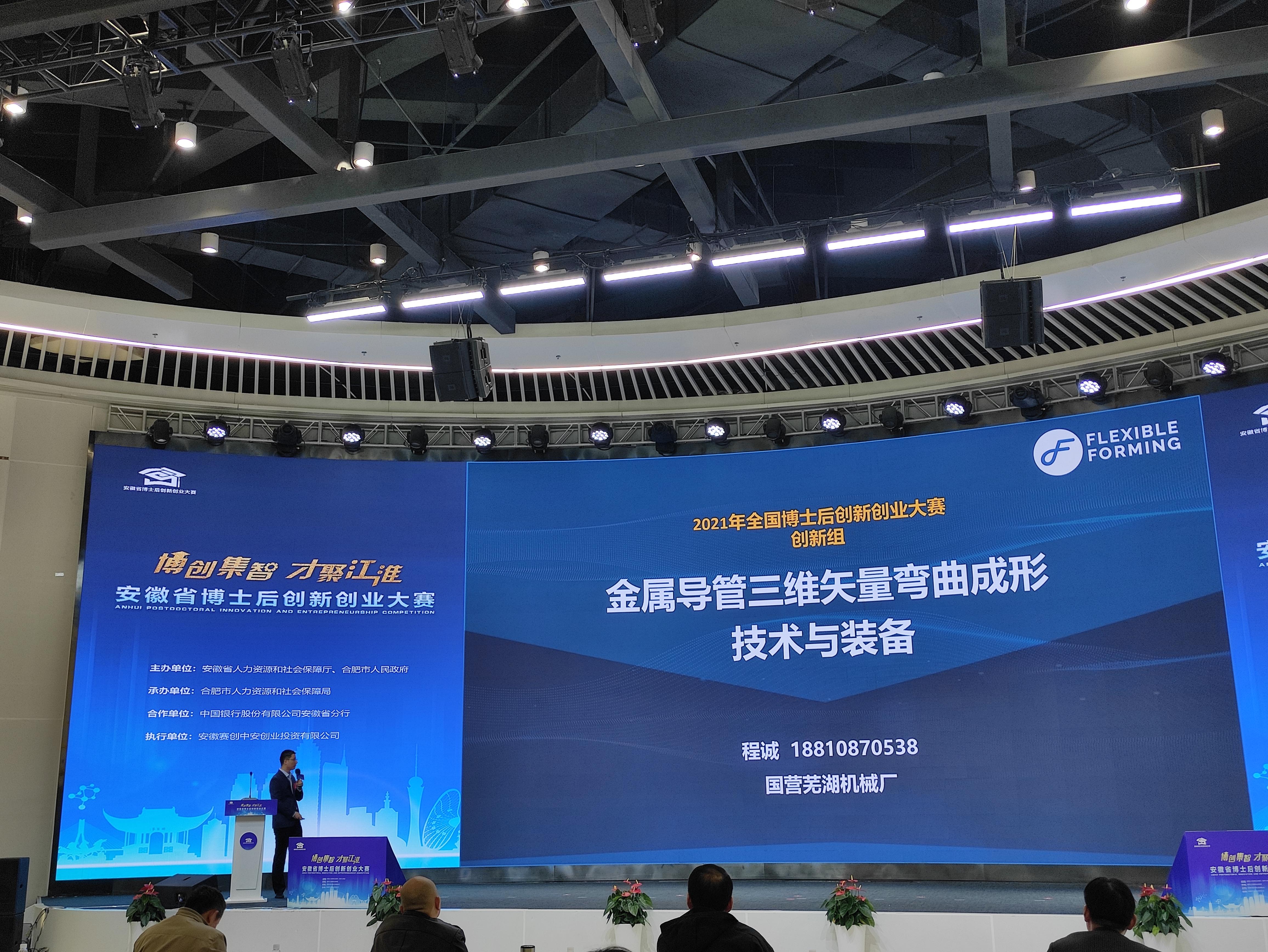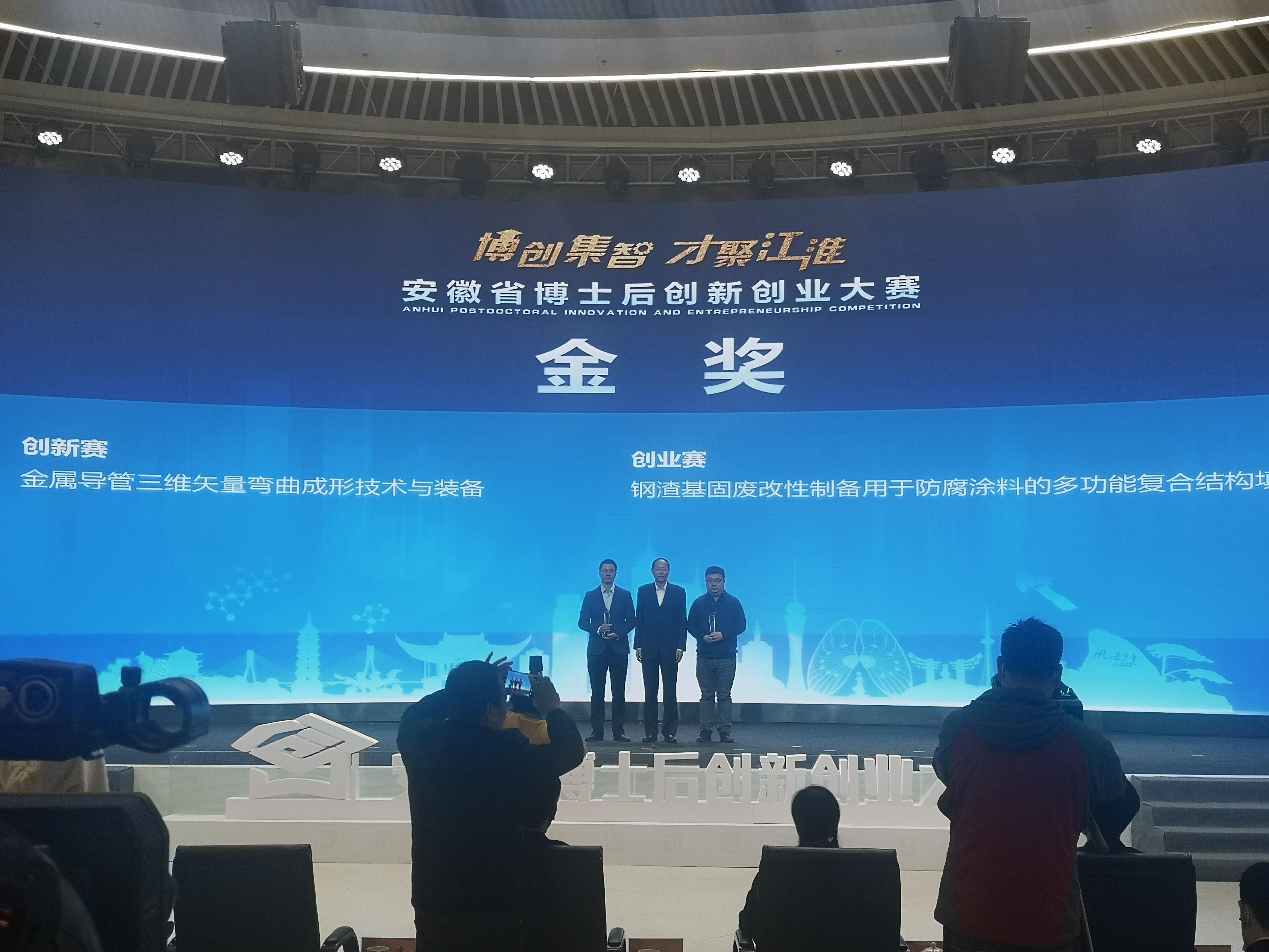 此次全国博士后创新创业大赛,是人社部首次举办的全国性博士后创新创业赛事。安徽赛区共有43个项目入围决赛,设金奖2名、银奖4名、铜奖10名。院与中国人民解放军第5720厂联合培养博士后程诚的“金属导管三维矢量弯曲成形技术与装备”,以第一名的好成绩获得创新组金奖。