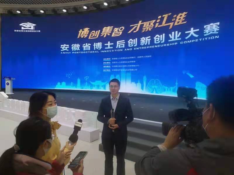 1022日,2021年全国第一届博士后创新创业大赛安徽赛区暨首届安徽省“博创集智才聚江淮”博士后创新创业大赛决赛颁奖和项目签约仪式在合肥中安创谷全球路演中心举行。