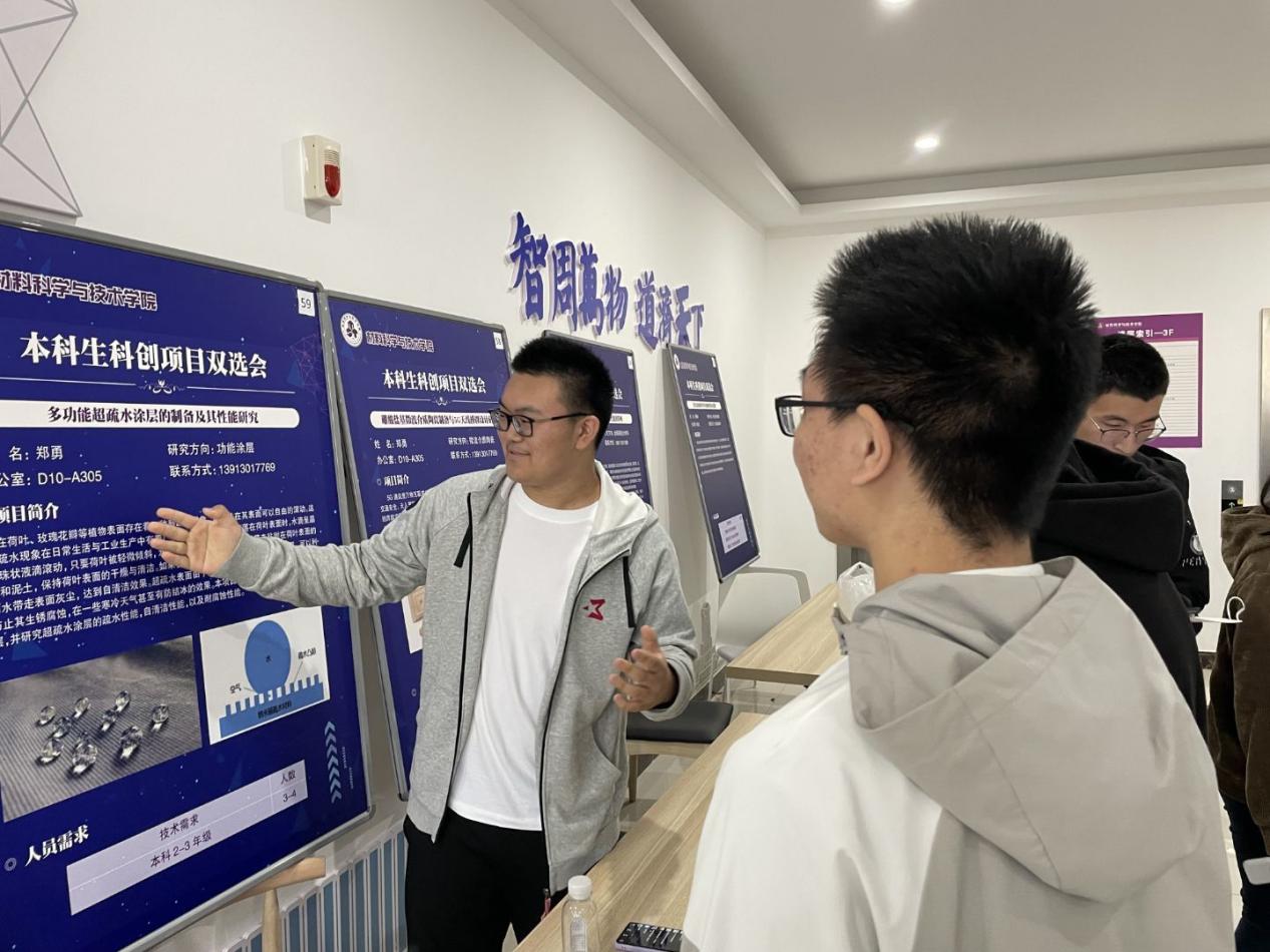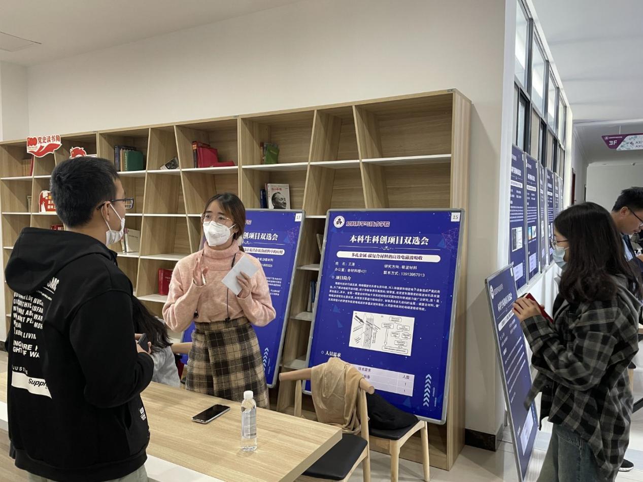 次日下午,在午夜av 三楼开展了线下科创项目双选会。前期面向全院教师共征集本科生创新项目59项,通过展板陈列的方式供学生浏览与选择,同时有项目负责人为感兴趣的或有疑惑的同学答疑,现场登记报名。本次科创项目申报采取双向选择的形式,相比传统的同学四处找老师,了解项目或是由表格报名项目的形式更加高效,同学们也能了解更多学院老师的研究方向以及科创项目的前沿信息与分类。