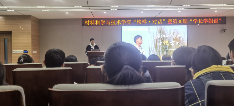 首先,董诗驰同学向同学们介绍自己的学研经历。无论是经常出入图书馆,还是不断取得的科创成就,亦或是担任物理爱好者协会会长,都诠释着他对所学专业的热爱。他建议同学们要积极参与科创。除此之外,他用自己的亲身经历告诉同学们,大家应该边学边做,知识与实践密不可分。最后他也希望大家能明确自己的未来规划,找到自己的兴趣所在。