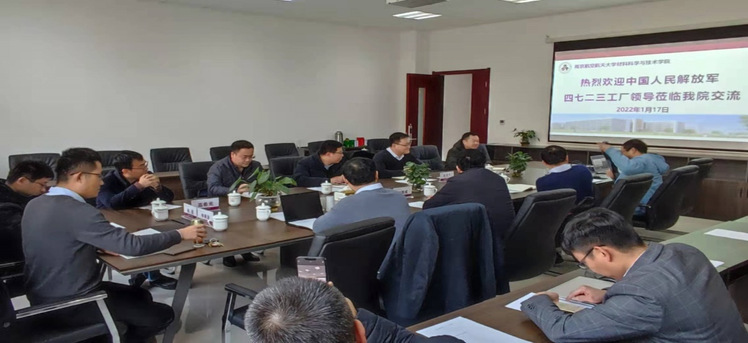 2022年1月17日上午,中国人民解放军第四七二三工厂厂长张旭东、总工程师王胜礼、纪委书记兼工会主席杨志民、人力资源处副处长翟少鹏一行来午夜av 进行产学研合作对接洽谈。学院院长张校刚、副院长刘周成、院长助理占小红、能源与动力学院高希光教授、材料加工工程系主任郭训忠、材料科学系主任杨亮等参加了对接洽谈会。会议由占小红主持。