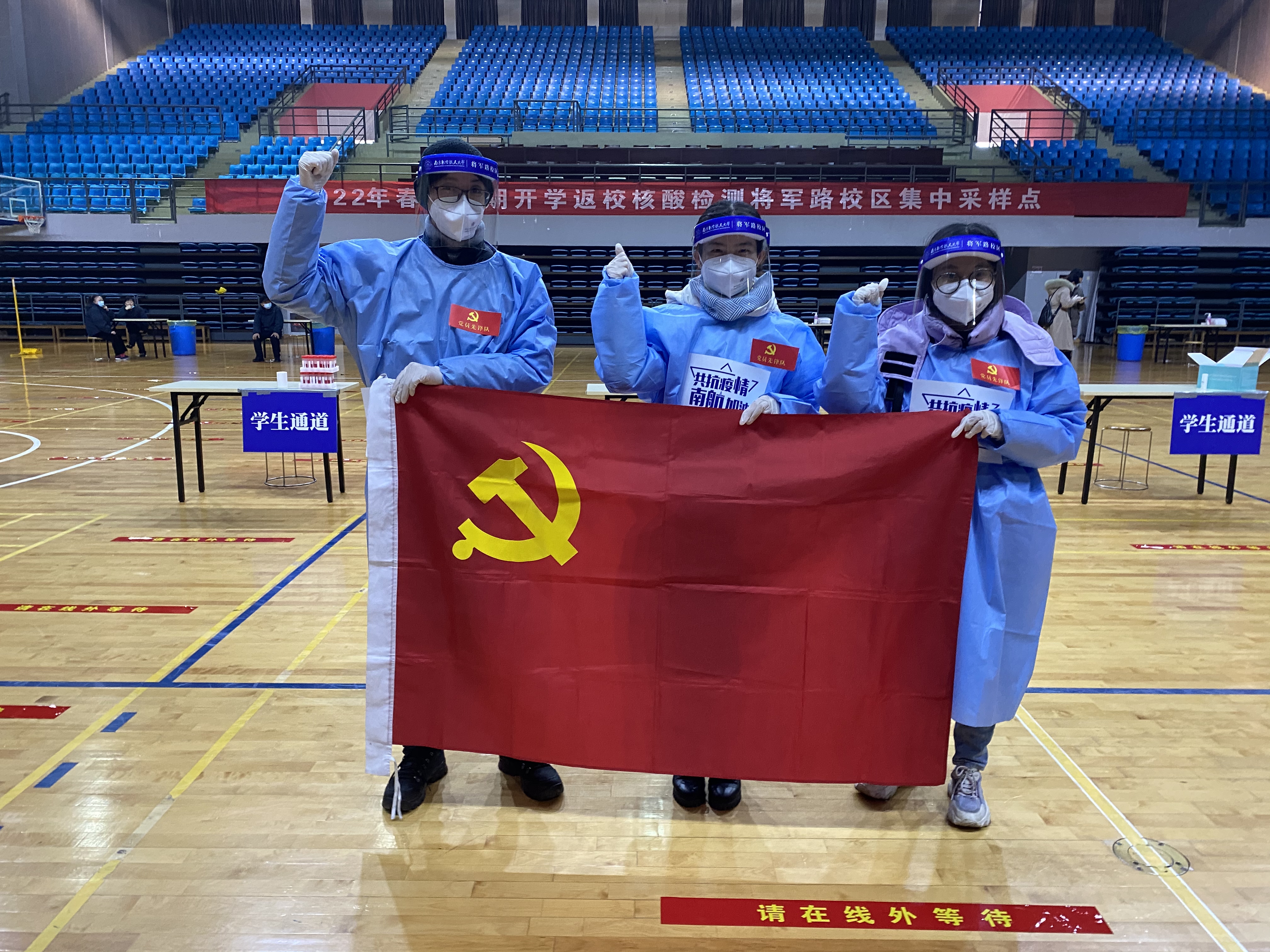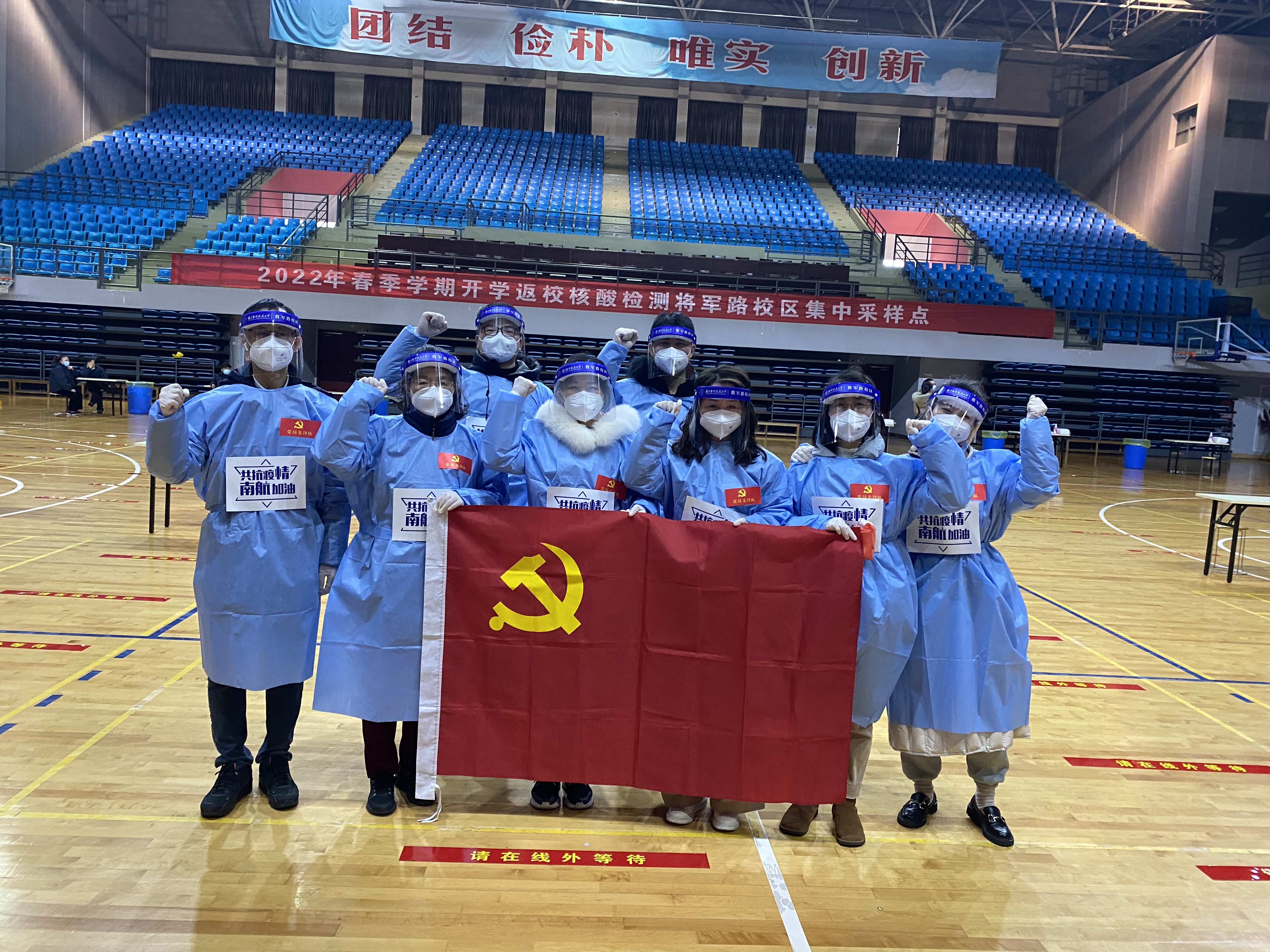飞雪迎春到,温暖迎生归。在全国新冠疫情防控不容松懈的形势下,2月18日我校如期迎来首批学生返校,为贯彻落实疫情防控有关要求,确保学生返校后平安开展学习生活,午夜av 组织先锋志愿服务队报名参加首批学生返校集中核酸检测志愿服务工作。2月15日,在收到学校志愿者招募通知后,学院党委立即组织教工支部积极响应,迅速组建了一支由20名教职工组成青年先锋队,第一次时间助力学校首批返校学生核酸检测。