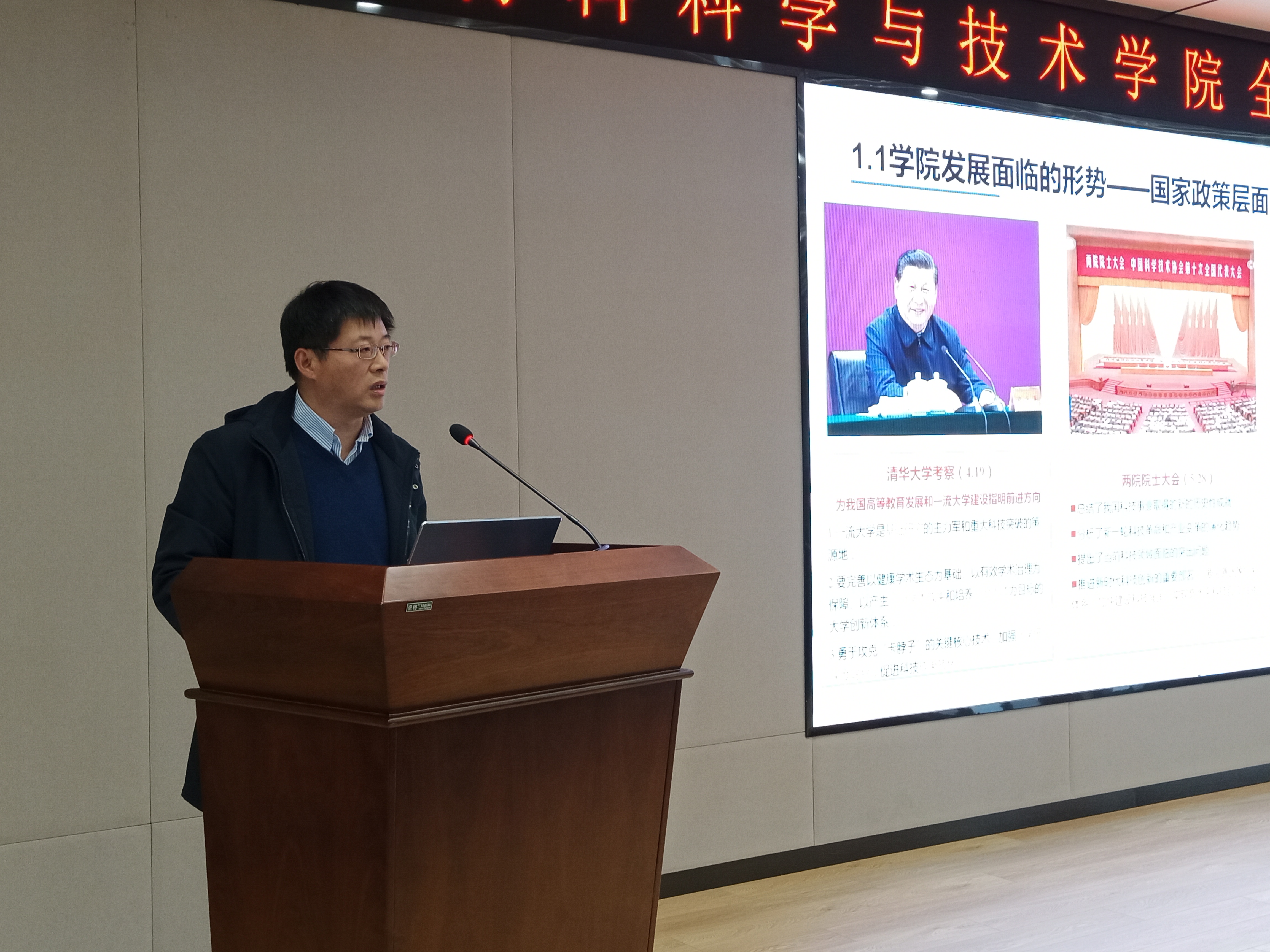 院长张校刚以《形势与挑战》为题,对学院发展面临的内外环境和挑战进行分析研判,提出要聚焦立德树人根本任务,坚持科技创新的“四个面向”,坚持航空航天特色发展,拓展学科交叉融合和校内外资源,最终实现学院跨越式发展。一是加快推进学科建设,通过学院战略发展委员会和学院学术委员会的耦合作用,落实好“理科卓越工程”和新兴交叉学科建设;二要求深入实施人才强院战略,创新师资队伍引培模式,系统谋划、精准引培;三要把握历史机遇,把握江苏省重点实验室重组建设的时间节点,做好学院相应工作。