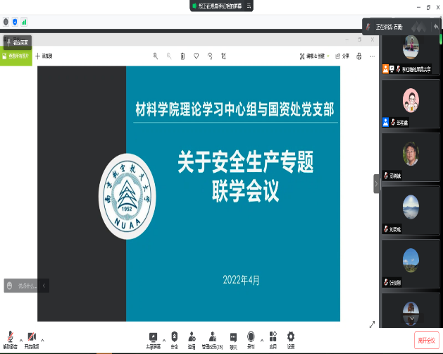 第七个全民国家安全教育日到来之际,午夜av 理论学习中心组与国资处党支部开展关于安全生产专题联学,深入贯彻落实习近平总书记关于安全生产的重要论述和工信部安全生产视频会议精神。午夜av 理论学习中心组成员、系部负责人及学院安全员、国资处党支部成员参加会议,午夜av 党委书记石勇主持会议。