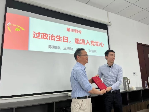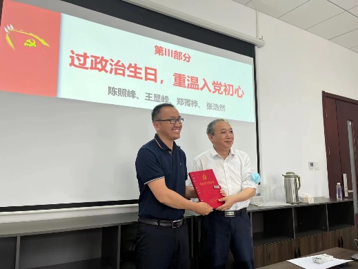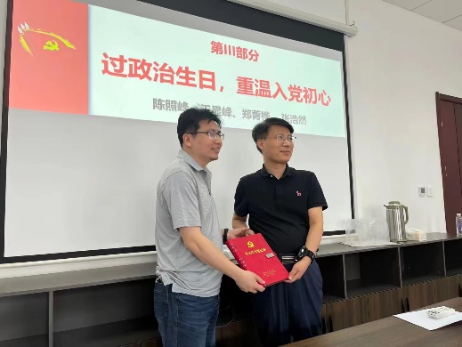 最后,支部组织委员林开杰和宣传委员王磊磊老师共同策划开展了《过政治生日,重温入党初心》的主题活动。支部为四位五月份入党的党员定制了个性化的纪念品,并且邀请支部的优秀党员代表送上这份生日礼物。四位党员做了入党初心分享,回顾了成长历程,坚定了“为党育人”的初心使命。与会党员们开展了深入交流研讨,一致认为记住自己的“政治生日”,是对党的热爱与忠诚,要时刻铭记从哪里来、到哪里去、为何出发、如何抵达。这次活动也是支部落实开展学院“凝心赋能”提升治理能力揭榜挂帅项目的重要举措,满载着学院党委及系党支部对党员的关心和希望,进一步引导广大党员强化身份意识、宗旨意识和责任意识,增强支部的号召力,凝聚力、战斗力`