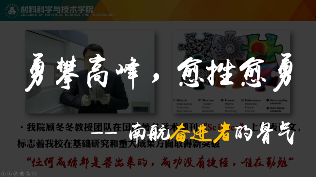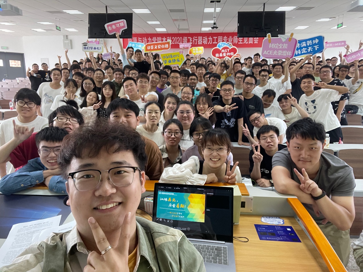 他以南航不同时期代表人物面临的时代斗争,以及他们的骨气特质,引发学生思考青年一代面临的时代难题:“核心技术还不在我们手里,各领域的卡脖子问题依旧存在”的题目该如何破解?引导毕业生勇于攀登科技高峰。