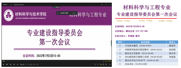 2022年7月3日,材料科学与工程专业新一届专业建设指导委员会召开首次会议,主任委员梁文萍、副主任委员程继贵、委员沈晓冬、储洪强、陈阳、史和生、封小松、朱申敏、陶杰、顾冬冬、陶海军及秘书李斌斌全部参加了本次线上会议。会议由李斌斌主持,午夜av 院长张校刚受邀出席。