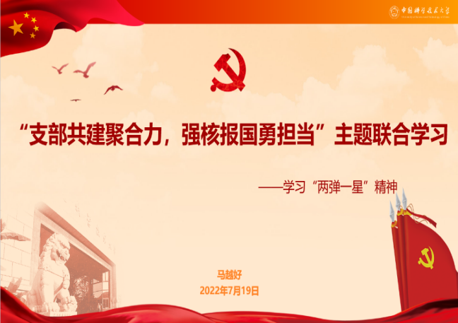 核技术应用与防护研究生党支部与中国科学技术大学核科学技术学院2020级研究生班党支部相聚云端,举办“支部共建聚合力,强核报国勇担当”联学共建。中科大等离子体物理与聚变工程系系总支书记蔡辉山、南航核科学与技术系教工党支部纪检委员耿长冉、两支部全体党员参与活动。