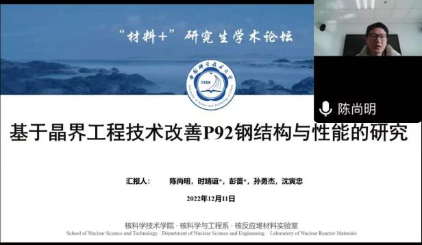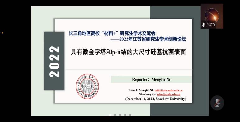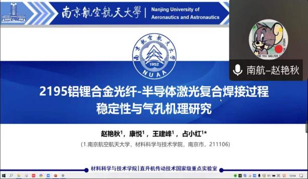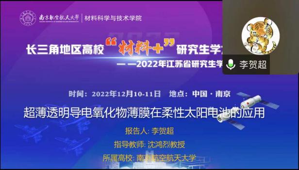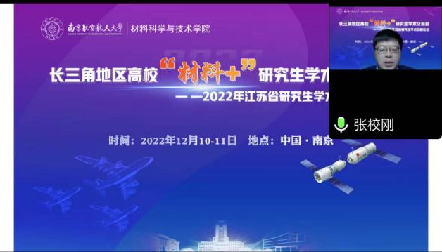 12月10-11日,由江苏省教育厅工学 3 类教指委主办,南航午夜av 承办的长三角地区高校“材料+”研究生学术交流会暨2022年江苏省研究生学术创新论坛活动顺利举办。来自北京大学、浙江大学、北京航空航天大学、上海理工大学、东南大学、西北工业大学、南京理工大学、中国科学院等十几所高校的40余名学生通过线上的形式进行学术成果交流与分享,百余名师生聆听报告并参加讨论。