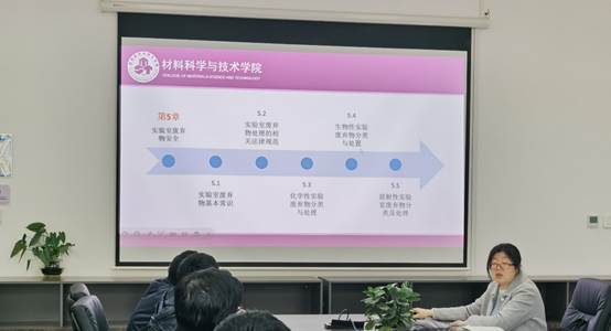 随后,徐森详细介绍了课程的教学目标、学时分配、教学内容、教材选用等,将通过10个理论学时、4个实践学时、2个讨论学时,整合用电安全、消防安全、实验室安全、化学安全、仪器与设备安全、个人防护及应急处置、废弃物处理等安全教育内容,让学生掌握实验室安全及准入的知识和技能,学会保护自身及实验室环境。