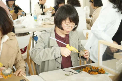 指尖芬芳,花漾人生活动——《梵高的向日葵》干花相框制作环节,花艺指导老师结合实物,为大家详细介绍了花材知识、插花艺术、干花搭配和裁剪、造型设计等插花步骤和技巧,展示了高雅的花艺作品也是创新的成果。老师们结合自身的想象力和创造力,融合自我审美感受,沉浸在创作中。整个过程,大家谈笑风生,互相欣赏,发挥奇思妙想,最终呈现出了一件件寄托对美的理解和感悟的精美作品,充分展示着女性同胞热爱生活、昂扬向上、追求真善美的精神风貌。