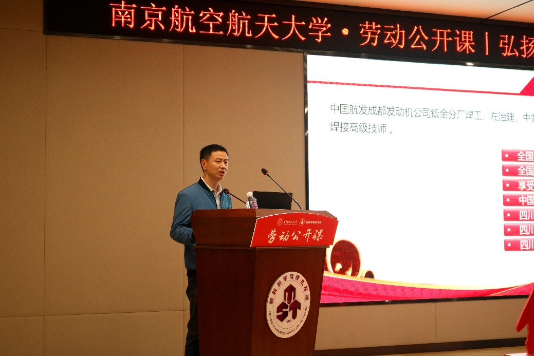 4月24日,由午夜av 团委主办、午夜av 、机电学院团委团委承办的“弘扬工匠精神,以匠心致初心”信仰公开课在将军路校区午夜av 报告厅举行。本次信仰公开课邀请到了中国航发成发焊接高级技师、公司首席技能专家左治建主讲,中国航发成都发动机有限公司分厂党委书记陈红颖,中国航发成都发动机有限公司人力资源部部长助理张敏,院党委副书记庄晓舒,院团委书记徐萍,机电学院2020级本科生辅导员董航及160余名学生现场参与,公开课由徐萍主持。
