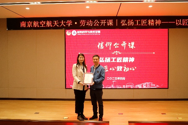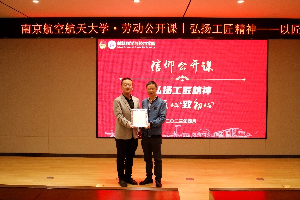 左治建作为长期坚守工作一线的技术工作者,心怀航空报国的深厚情怀,始终心系南航发展和学生成长成才。报告会上,庄晓舒和董航分别为左治建颁发“团学导师”“企业导师”聘书并举行聘任仪式。