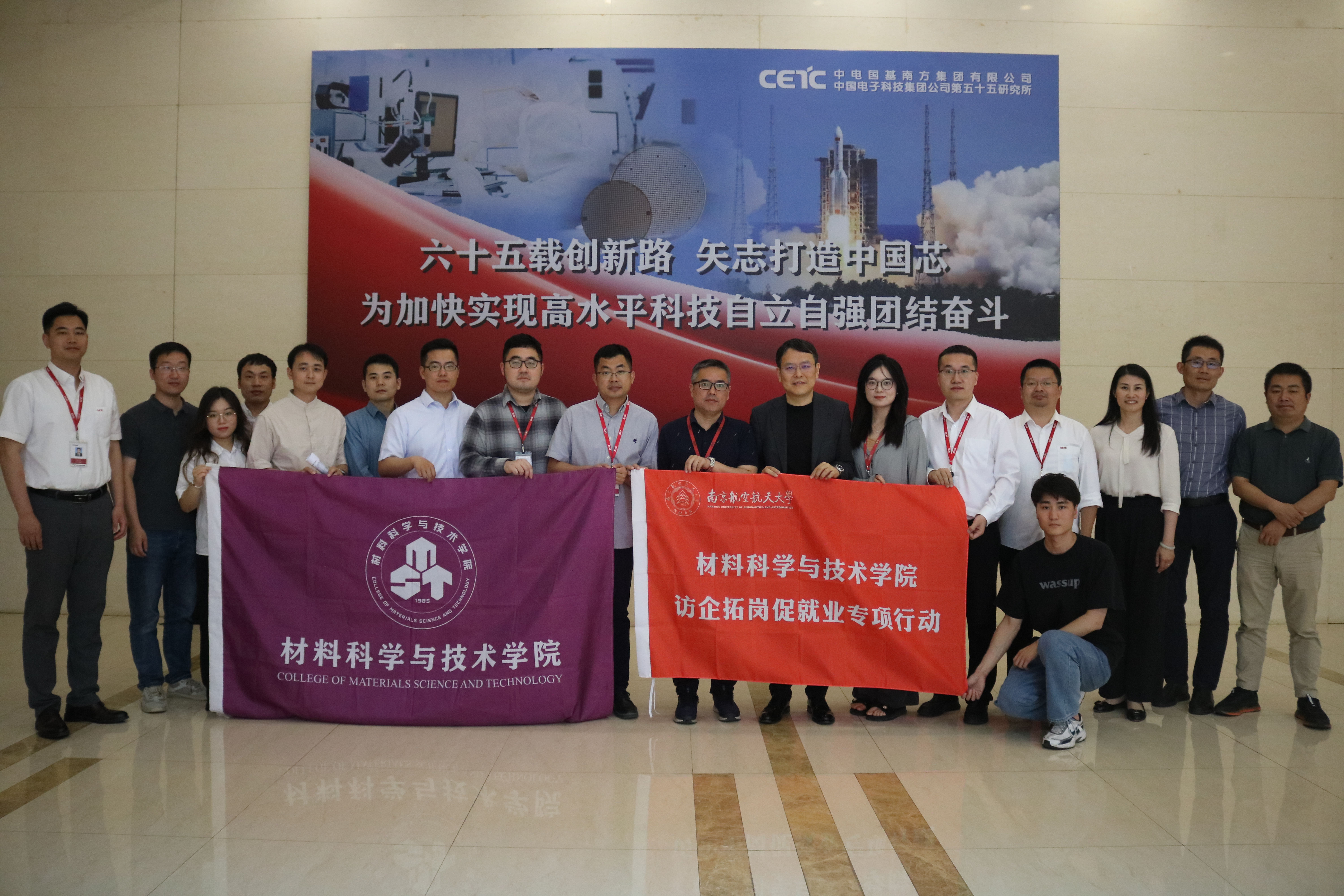 为深入开展学习贯彻习近平新时代中国特色社会主义思想主题教育,落实访企拓岗促就业专项行动,促进毕业生高质量就业,5月16日,院长顾冬冬带队赴中国电子科技集团第五十五研究所(以下简称“五十五所”)走访调研,院党委副书记庄晓舒、各系负责同志、研究生辅导员及硕博学生代表参加调研。五十五所微波功率器件事业部主任设计师唐世军、微纳米制造部副主任郁元卫、人力资源部副主任谢俊领、平板显示事业部副主任杨斌、机械加工厂副主任王昆及多名南航校友参加交流座谈。