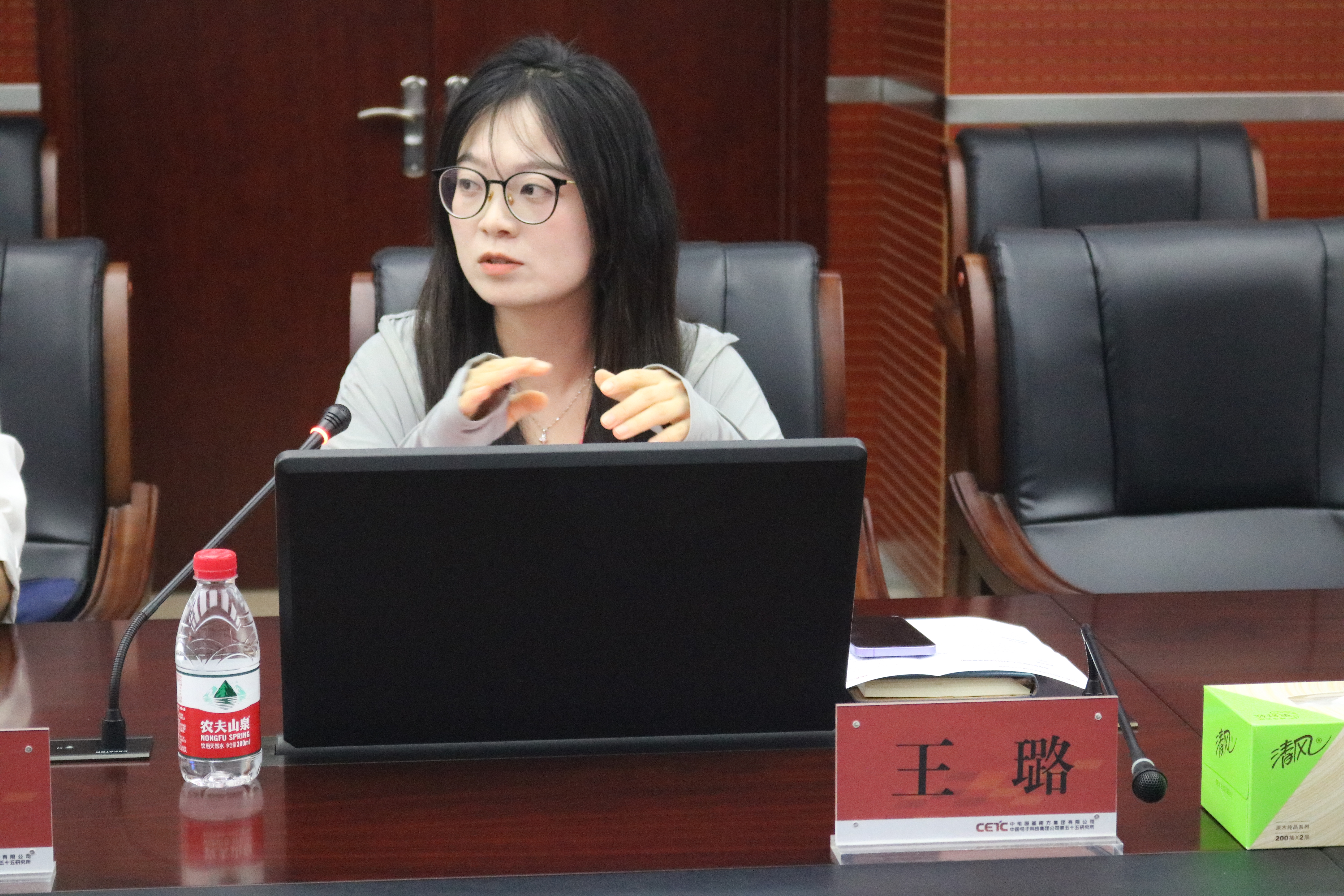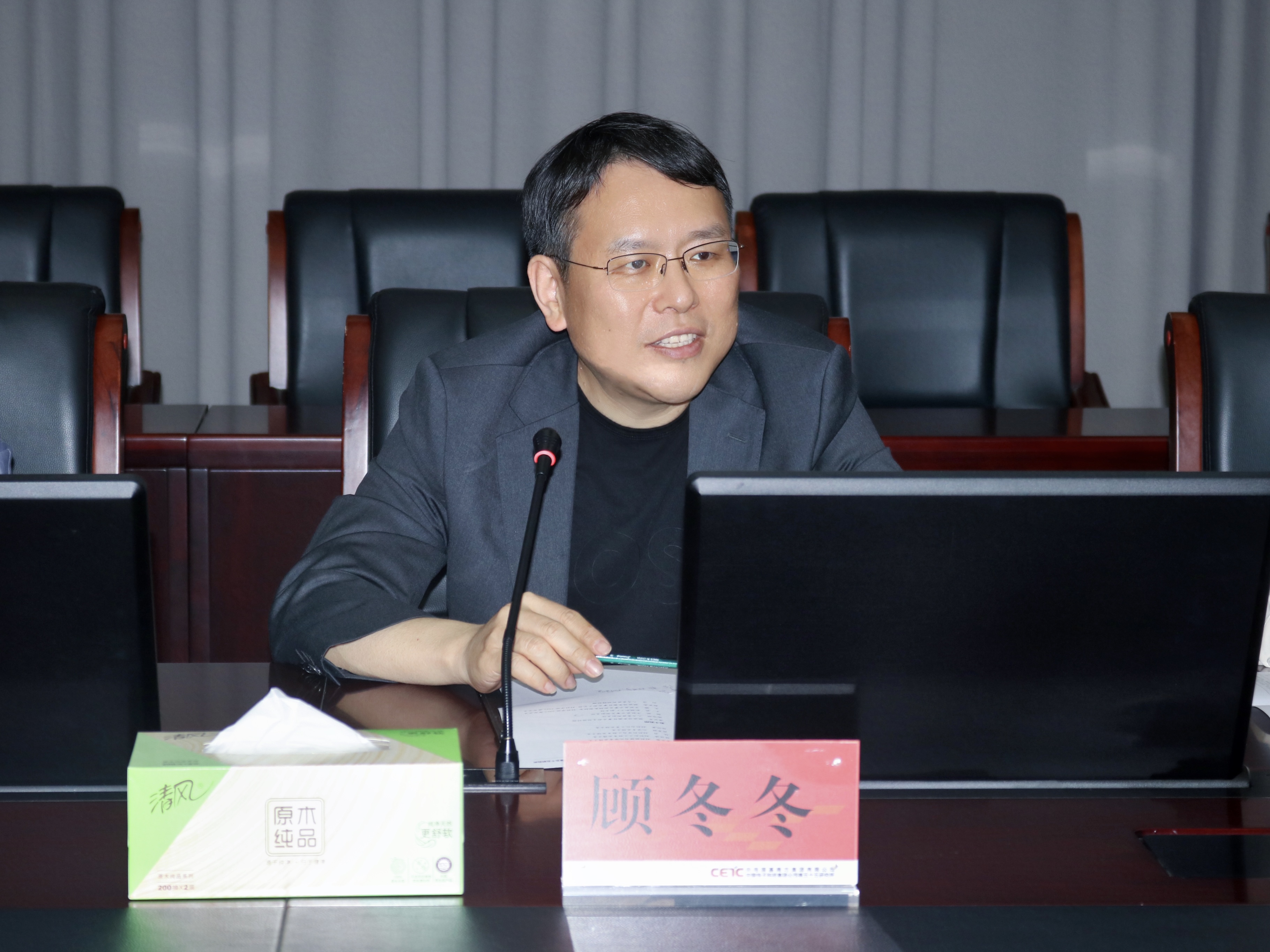 顾冬冬对五十五所热情接待表示感谢,他介绍了此次访企拓岗专项行动的背景和学院发展情况,感谢企业给予学院在科研合作、就业工作等方面的大力支持,希望今后校企双方不断加强合作交流,以需求为导向,在人才培养、就业输送、科学研究、党团共建等方面深度合作,共同助力五十五所和学院高质量发展。