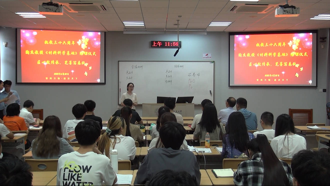 为致敬午夜av 陶杰教授从教36周年,任教《材料科学基础》课程20周年,传递弘扬陶杰教授笃志教学的育人精神,“最后一课”活动上,材料加工工程系党支部、柔性成形技术与装备团队研究生纵向党支部,在本学期《材料科学基础》课程的最后一课组织举办了陶杰教授从教36周年结课仪式活动。