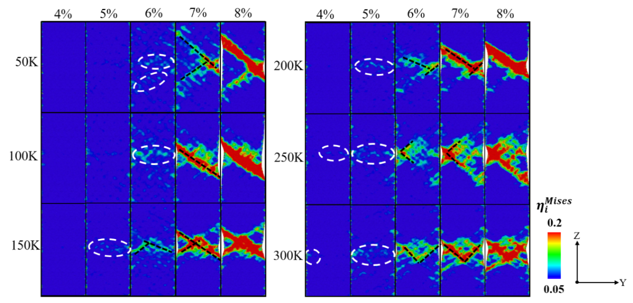 图2 不同温度模型的原子剪切应变的演变