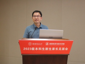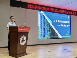 副院长常树全介绍本科教学情况。他以“从课程表到成绩单”概括本科阶段学习,解读专业培养方案、教学管理规定等,分析大学学习特点,强调学习永远是大学的“主旋律”,学院也将持续做好教学资源保障,为人才培养增动力、添活力。